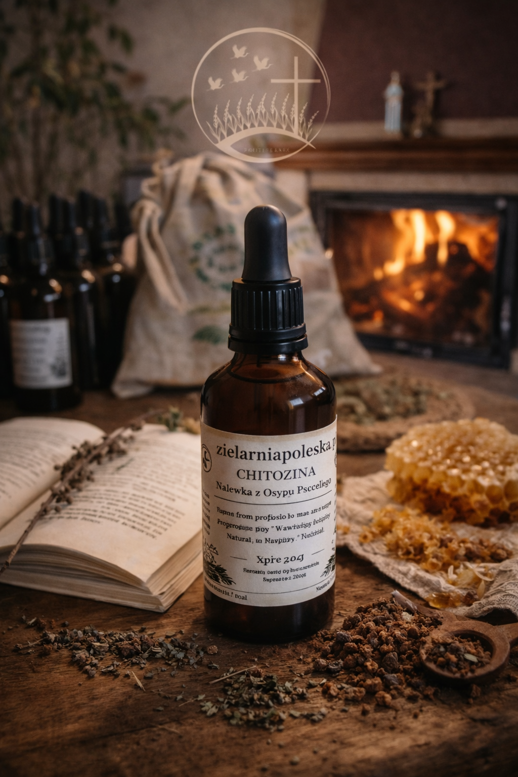 Nalewka z osypu pszczelego, znana również jako chitozyna, to tradycyjny preparat ceniony w zielarstwie ludowym i apiterapii. Powstaje z naturalnego osypu pszczelego – surowca bogatego w związki pochodzenia pszczelego, w tym chitynę i jej pochodne.