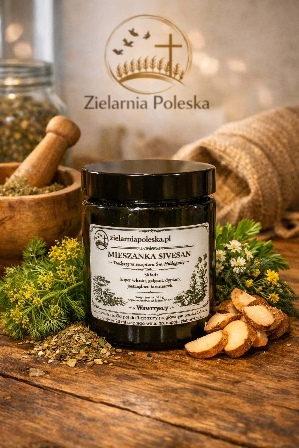 Sivesan - mieszanka ziół to klasyczny, uniwersalny preparat w tradycji hildegardowej, polecany osobom poszukującym naturalnych metod wspierania organizmu i równowagi zdrowotnej 🌿